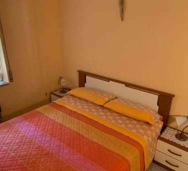 Helle, komfortable Ferienwohnung für bis zu Max. 5 Personen mit zwei Schlafzimmern und großem Balkon mit Meerblick. Alle Räume sind klimatisiert; der Fernseher empfängt deutsche und italienische Programme. Die komplett ausgestattete Küche verfügt über Gasherd und Backofen und ermöglicht bequeme Selbstversorgung. Ein privater, abgeschlossener Stellplatz bietet zusätzliche Sicherheit. Bettwäsche und Handtücher sind inklusive; auf Wunsch stehen Liegestühle und Sonnenschirm zur Verfügung. Der Hof bietet eine Außendusche und einen Grillplatz — ideal für entspannte Tage im schönen Gargano.