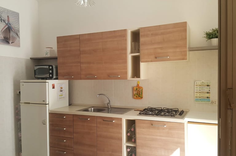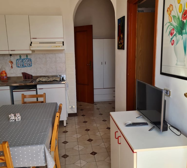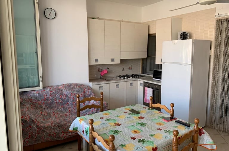 Helle, komfortable Ferienwohnung für bis zu max. 4/5 Personen mit ein Schlafzimmern. klimatisiert; der Fernseher italienische Programme. Die komplett ausgestattete Küche verfügt über Gasherd und ermöglicht bequeme Selbstversorgung. Ein privater Stellplatz bietet zusätzliche Sicherheit. Bettwäsche und Handtücher sind inklusive. Aktuelle Veranstaltungen in der Nähe, z.B. Luna Park für Kinder zu Fuß erreichbar.